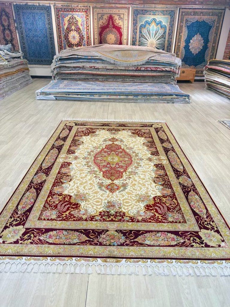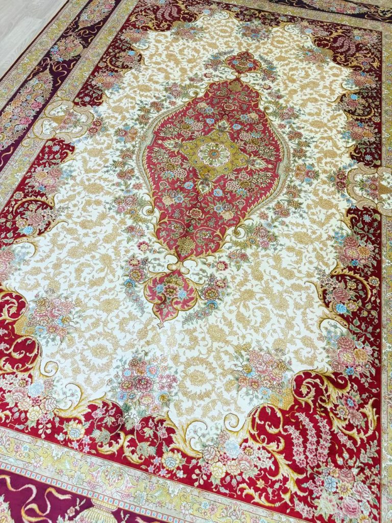 The pattern of this handmade silk carpet is very nice.
