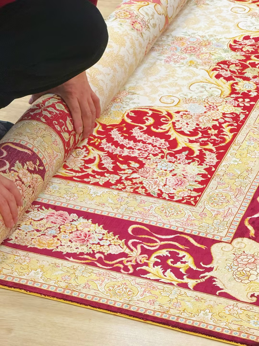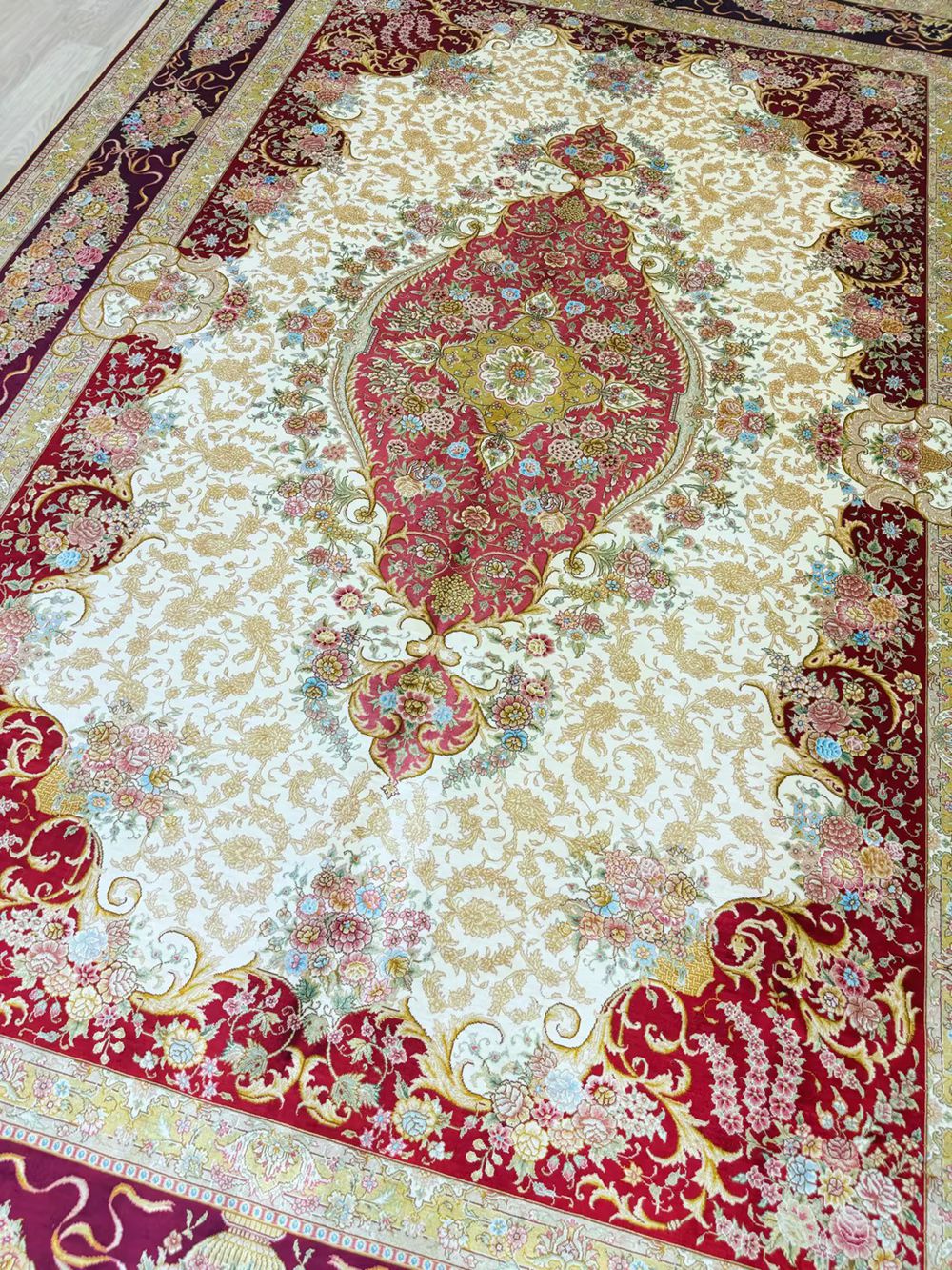 The pattern of this handmade silk carpet is very nice.