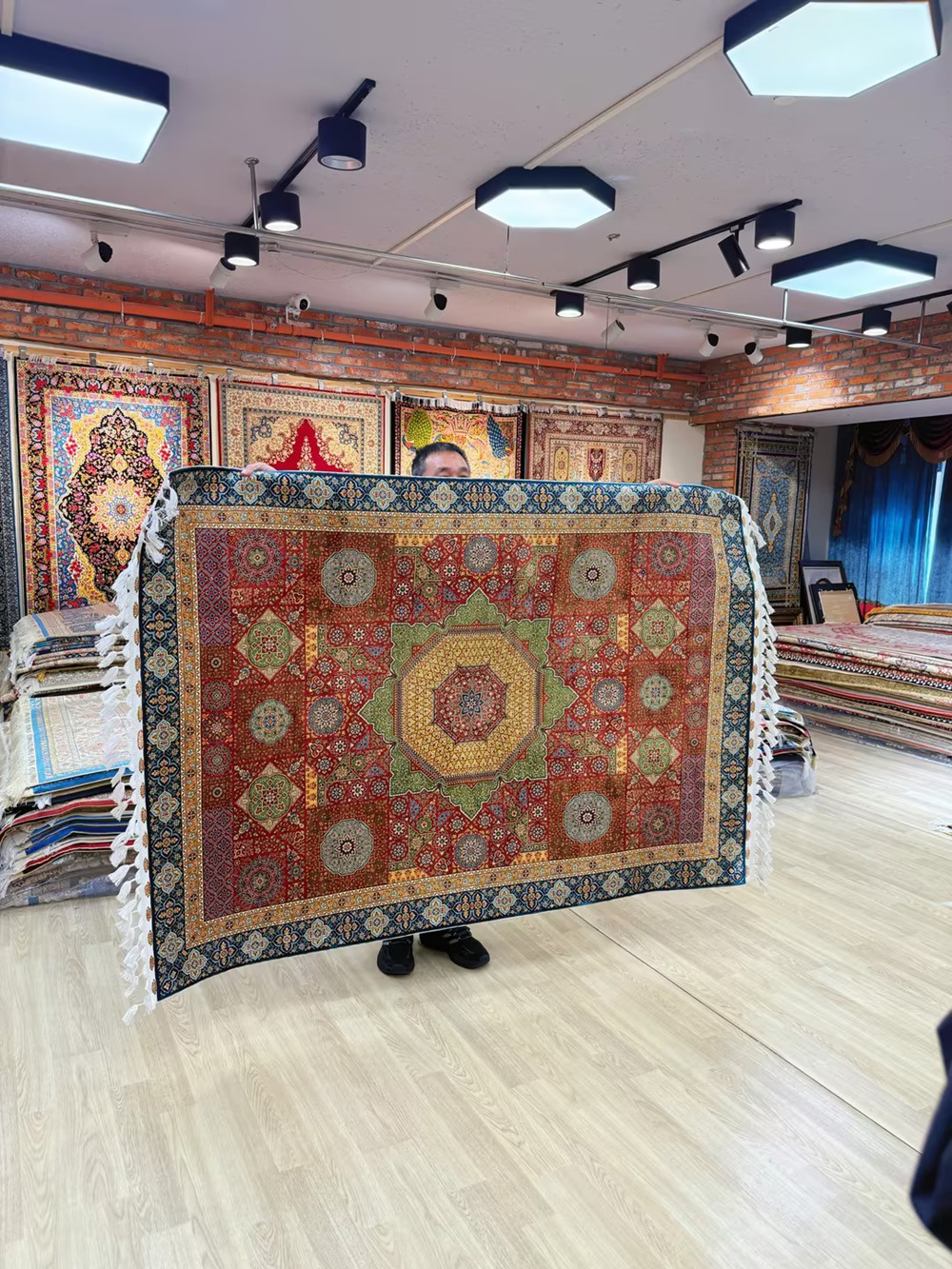 The size of this Mamuluk design handmade silk rug is 4.3x6.2ft.