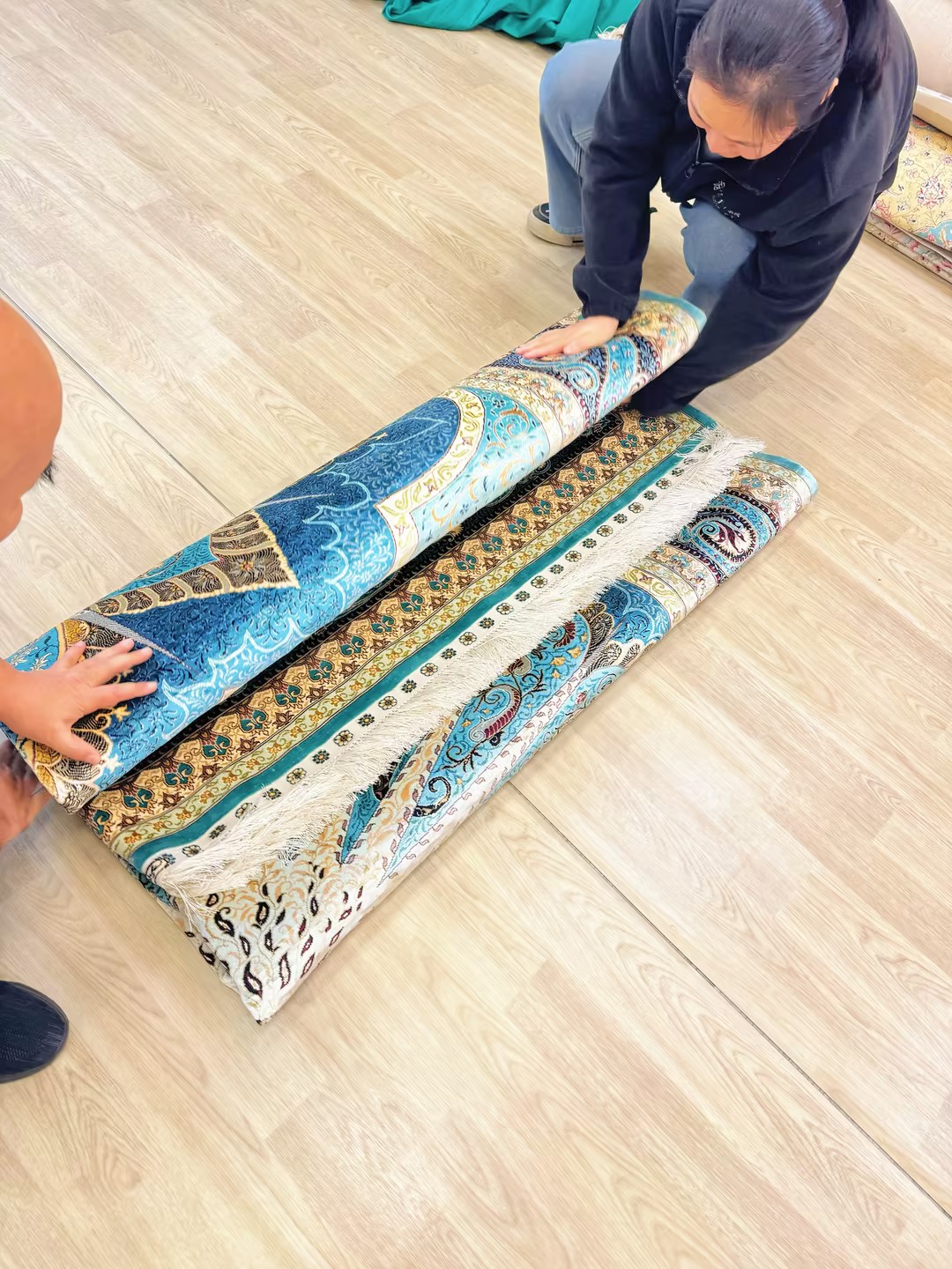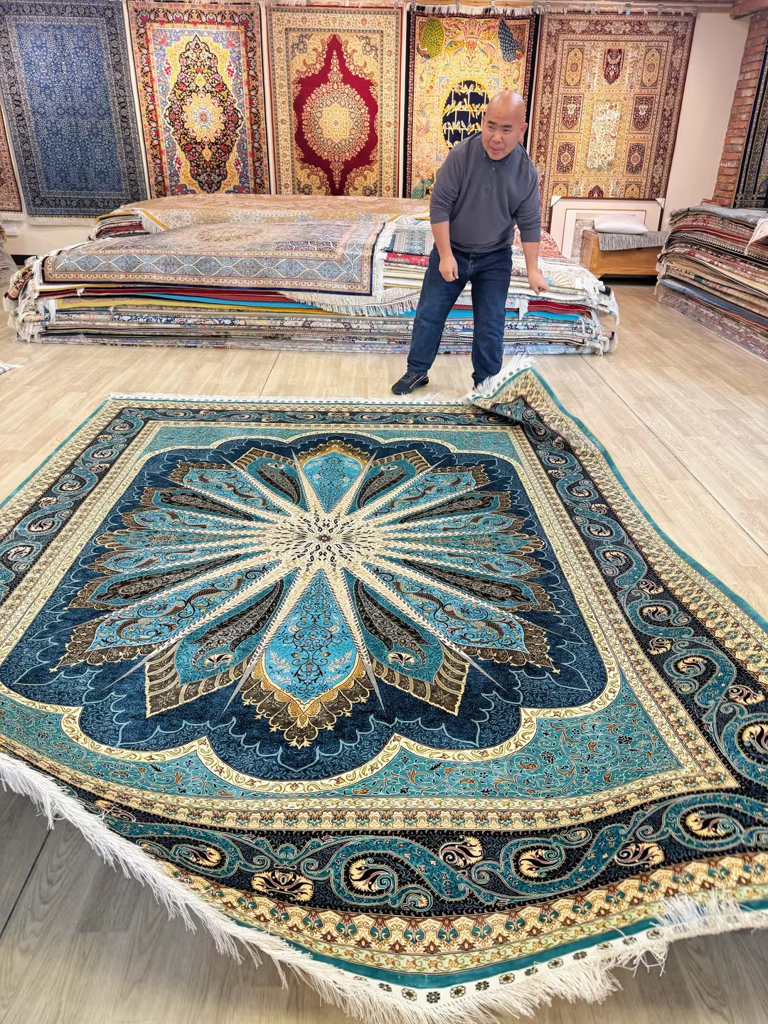 Today we packed up a 8x10ft blue peacock design handmade silk rug for our customer.