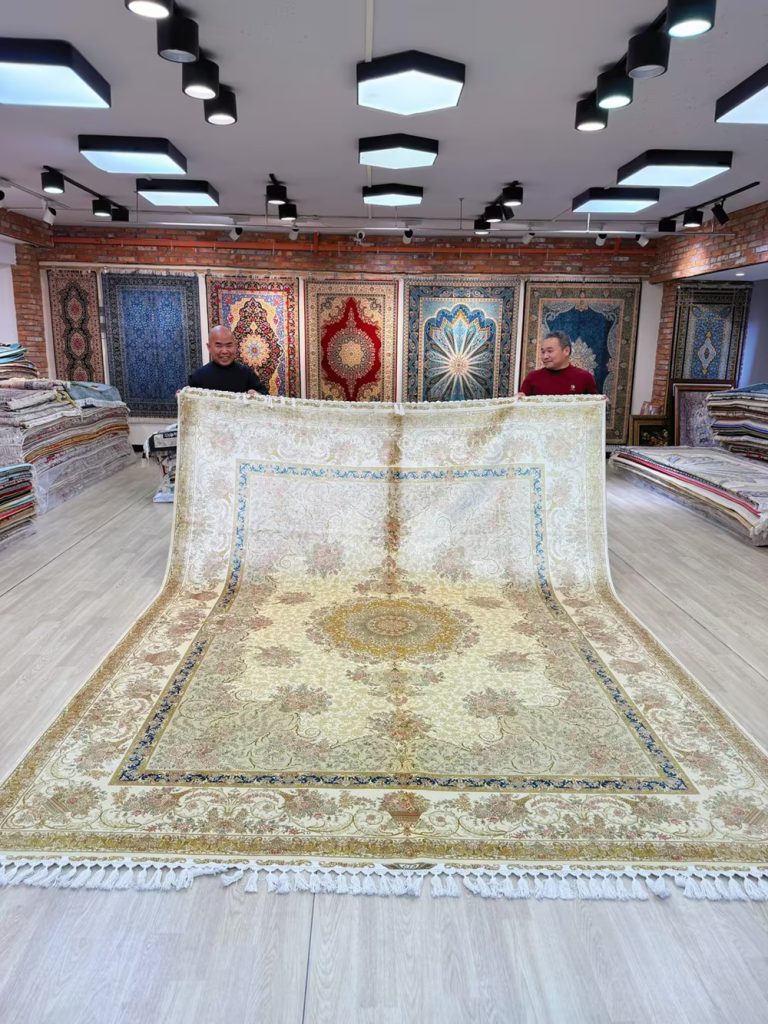 The pattern of this handmade silk carpet is very nice.