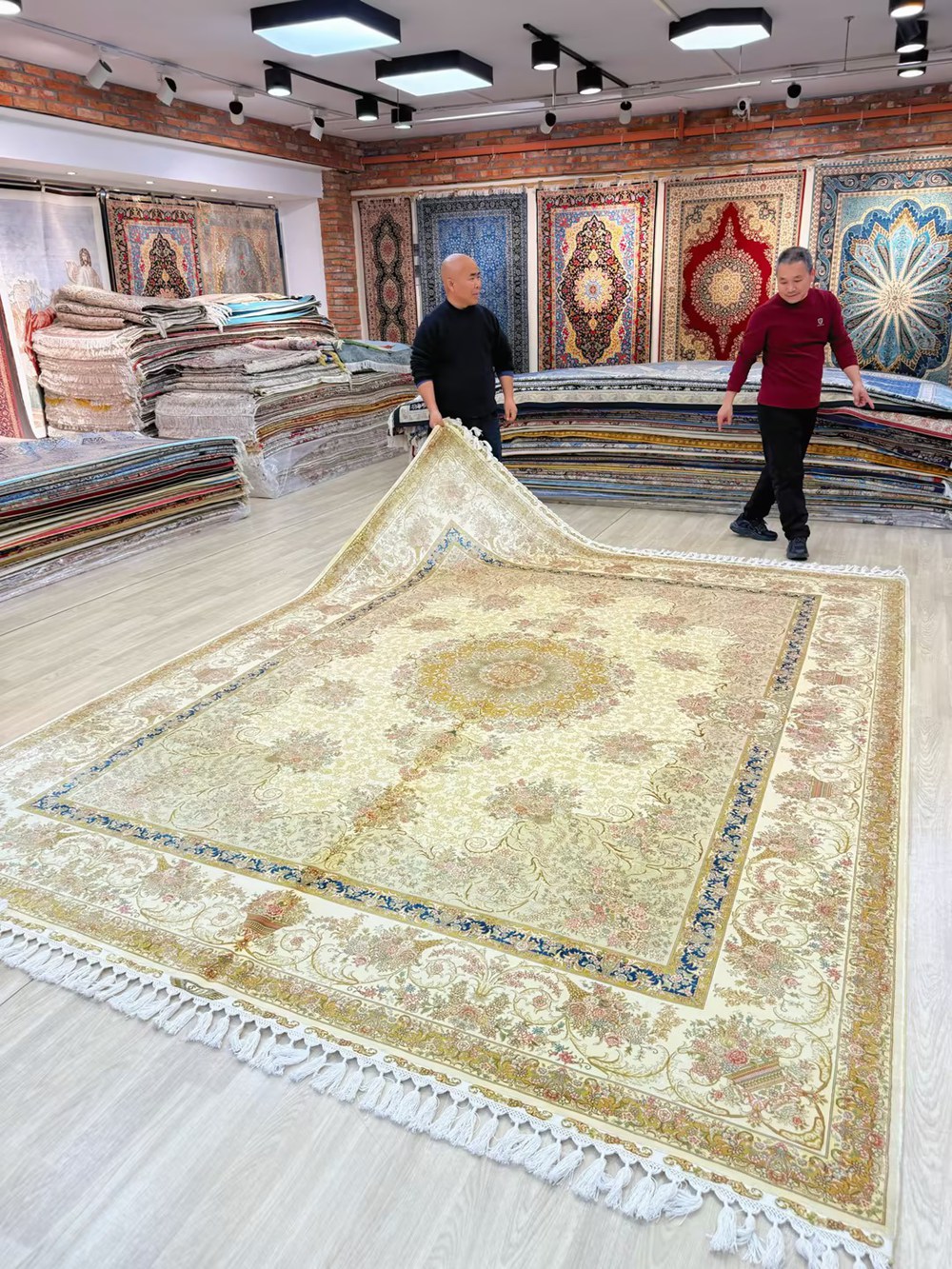 The size of this handmade silk carpet is 9x12ft.