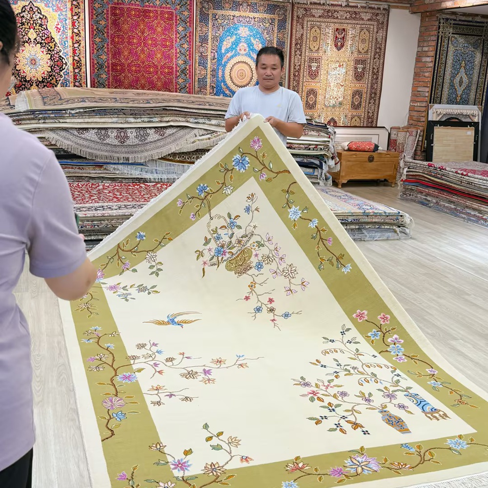 We started the day with two stunning 6x9ft wool rugs: a classic Handmade Persian Wool Rug and an elegant Chinese-Style Wool Rug. Known for their durability, thickness, and timeless appeal, these wool rugs are perfect for those seeking both comfort and longevity.