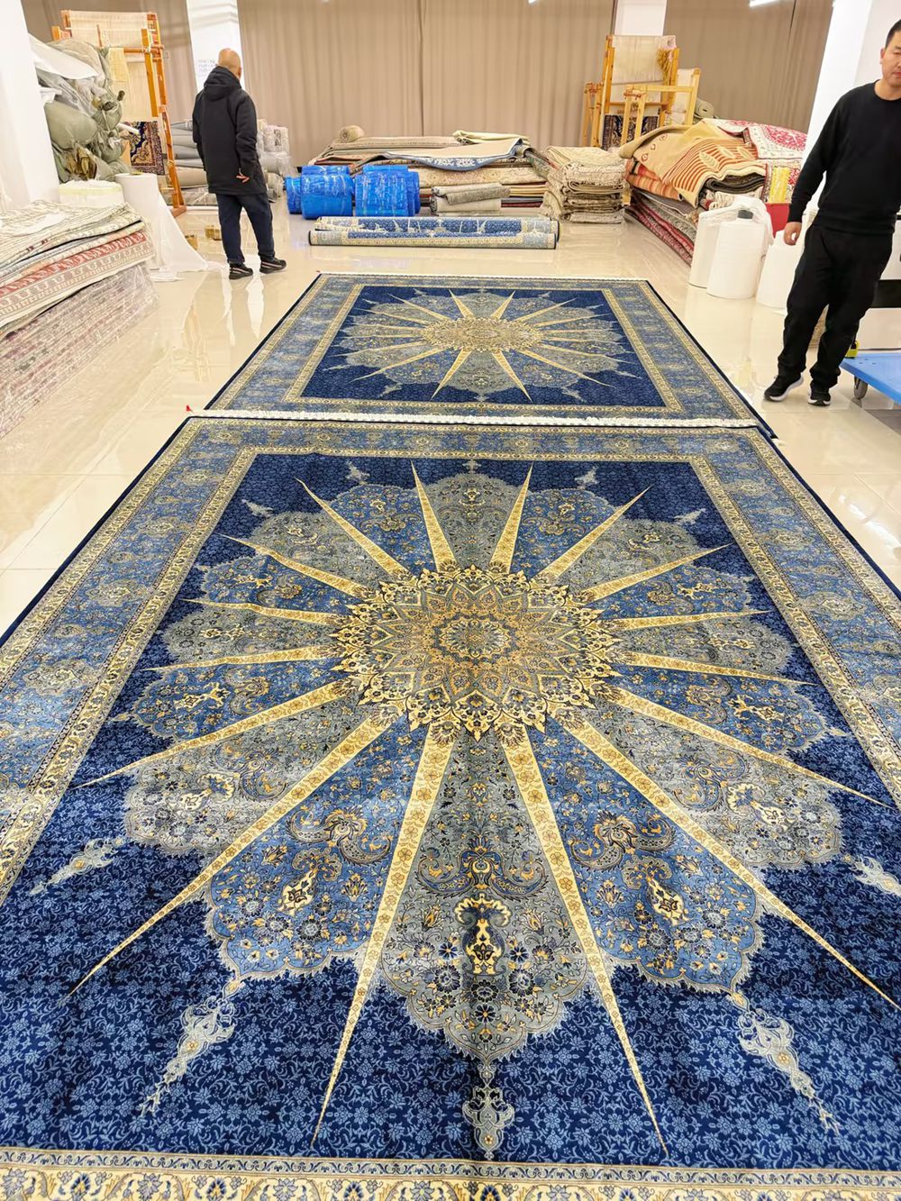 Blue handmade silk rugs with 9x12ft