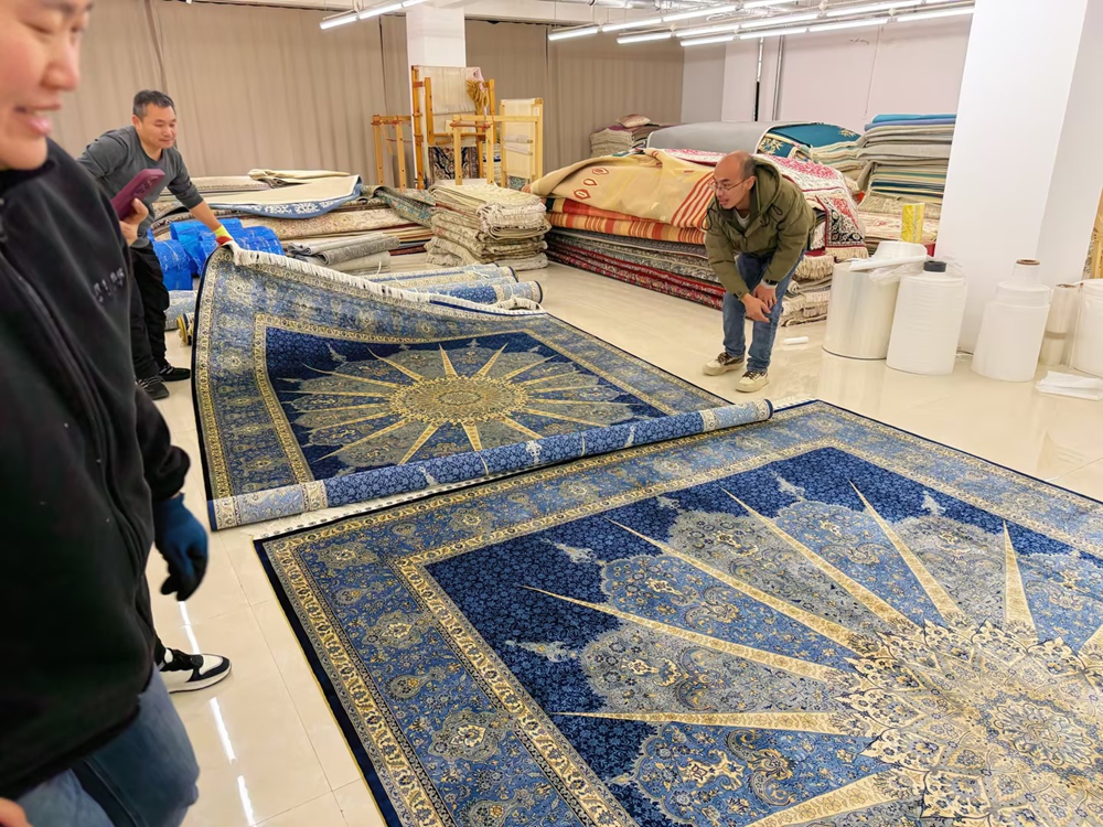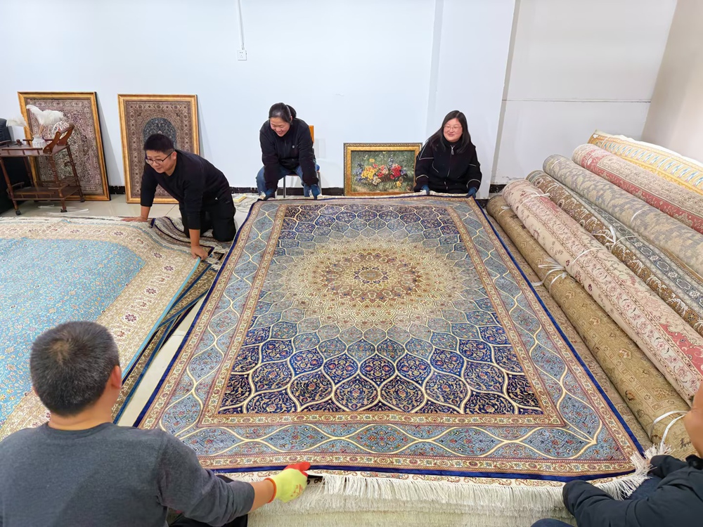 6x9ft Blue handmade silk carpets