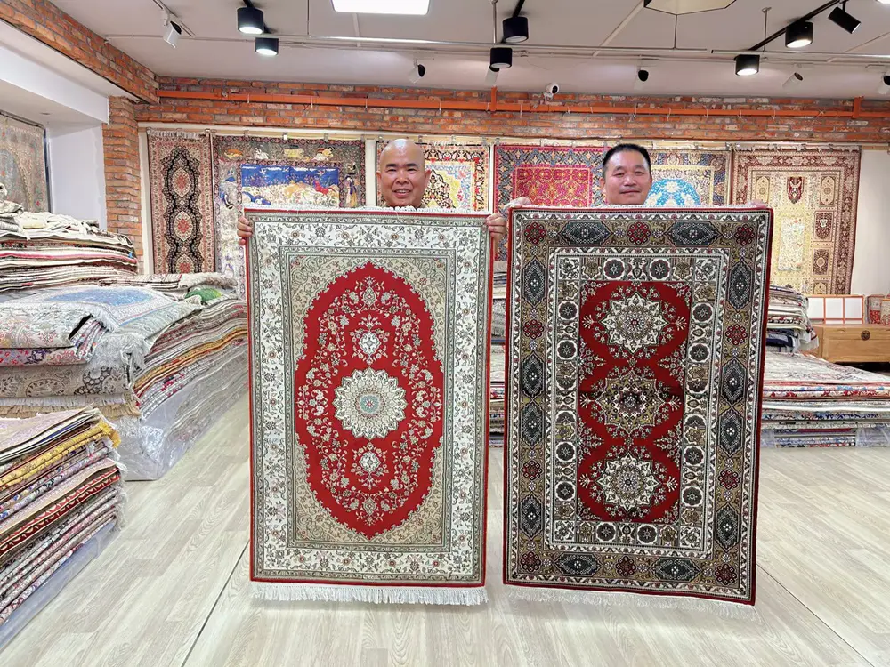 Each carpet is meticulously woven by skilled artisans, ensuring that every detail reflects tradition, beauty, and durability. The luxurious texture and vibrant color of these silk carpets will undoubtedly bring warmth and sophistication to any interior.