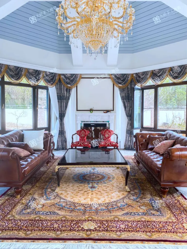 Persian silk rugs are an indispensable decorative feature in classical European-style homes. Their ornate patterns complement carved furniture and crystal chandeliers, creating a solemn and elegant ambiance.