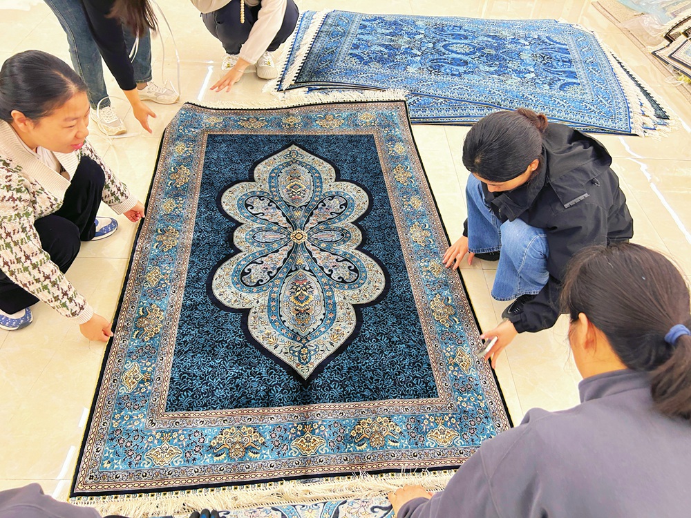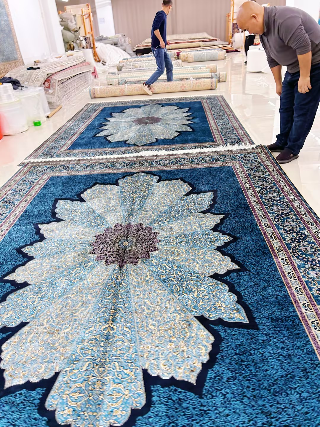 Nice 8x10ft(2.44x3.05m) Handmade blue Sultan design handmade silk carpet