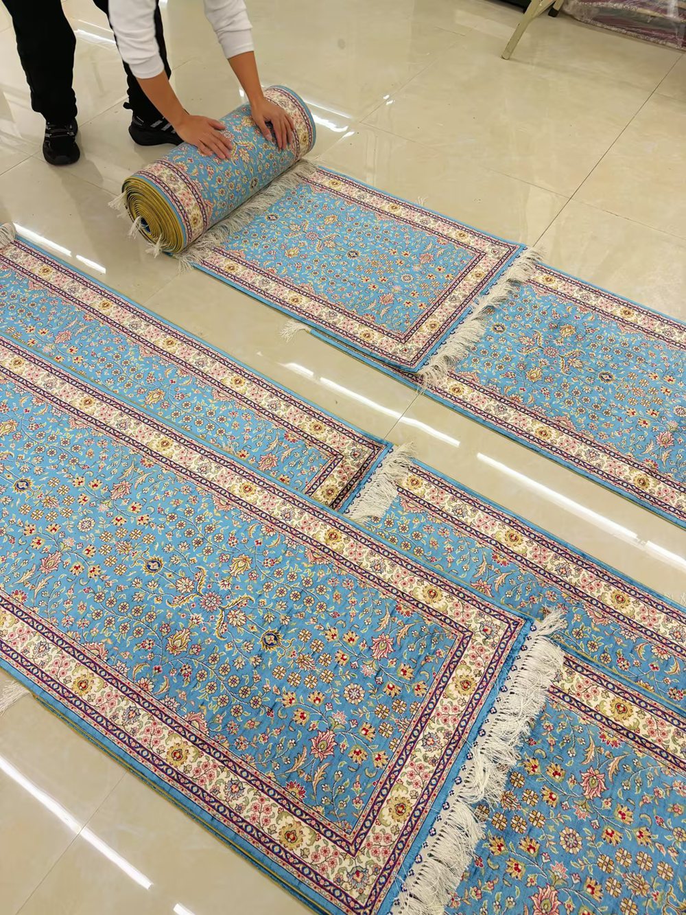Many Pieces Of Handmade Silk Rugs Were Packed Up