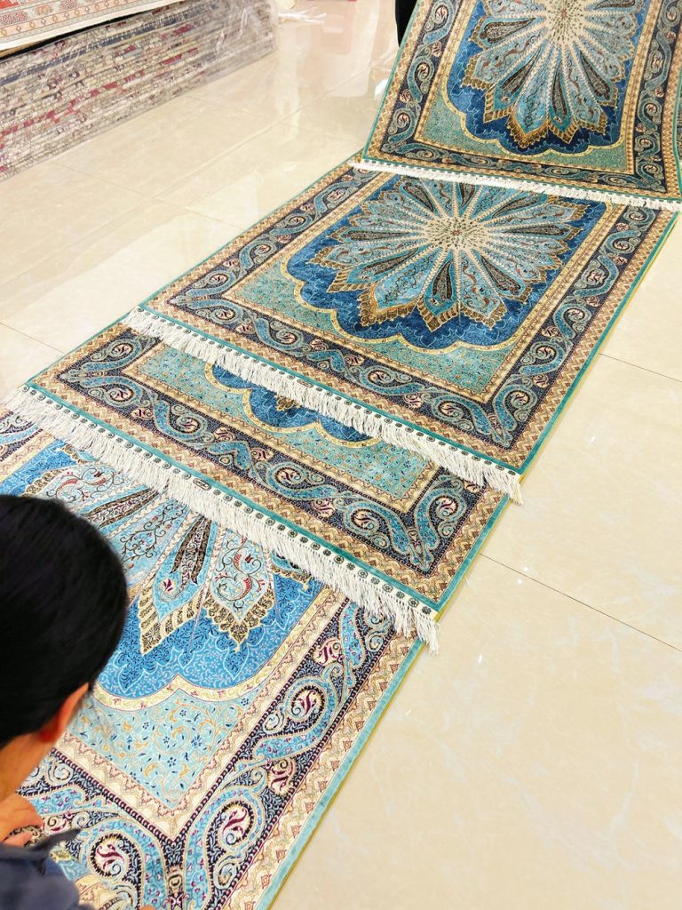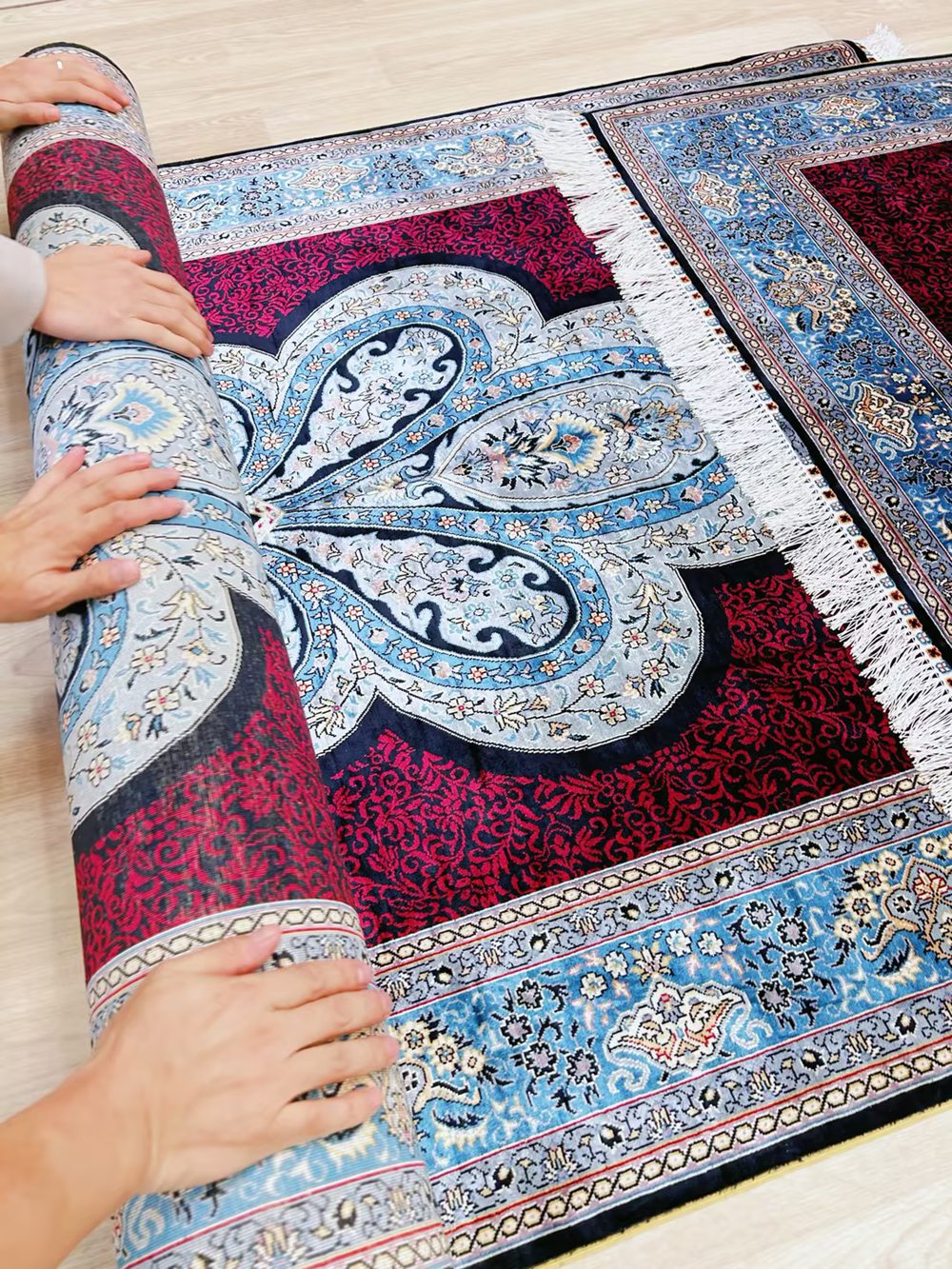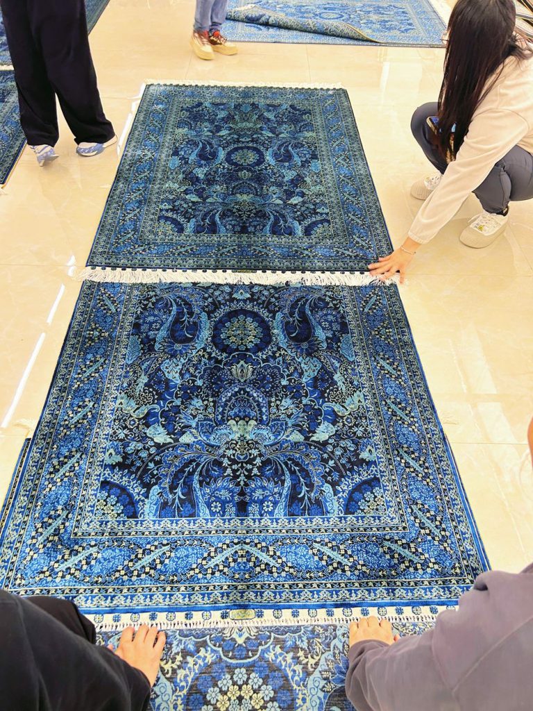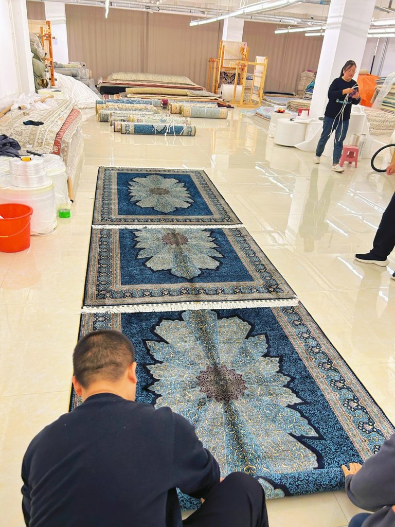 For this blue handmade silk rug, size 3x4.5ft and 4x6ft are ready now.