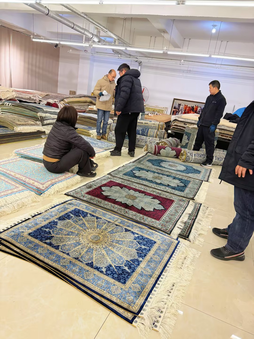 The size of these handmade silk carpets are 3x4.5ft.