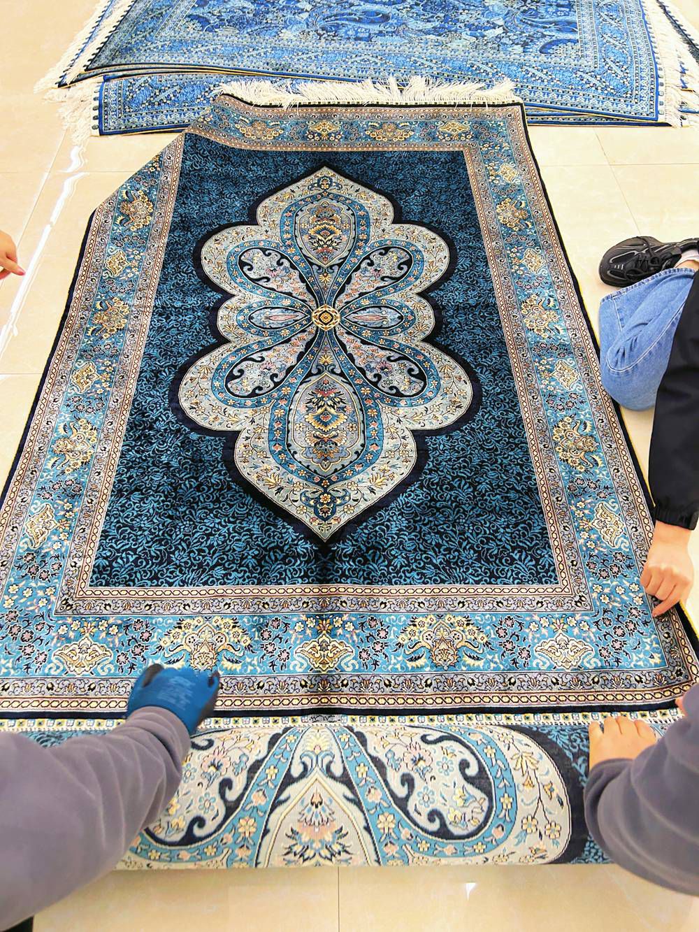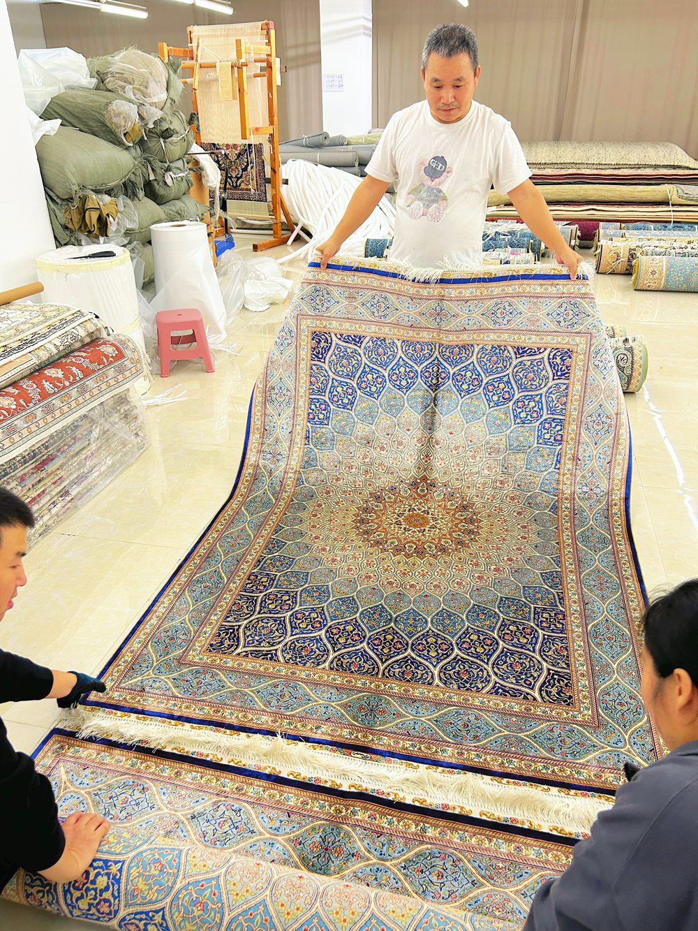 Many handmade silk rugs from Yilong were ready.