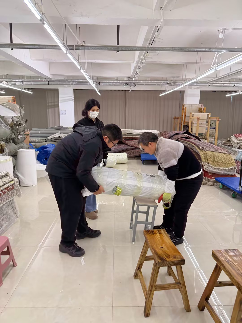 Hand Knotted Silk Carpets Were Packed Into Balls For Our Customer