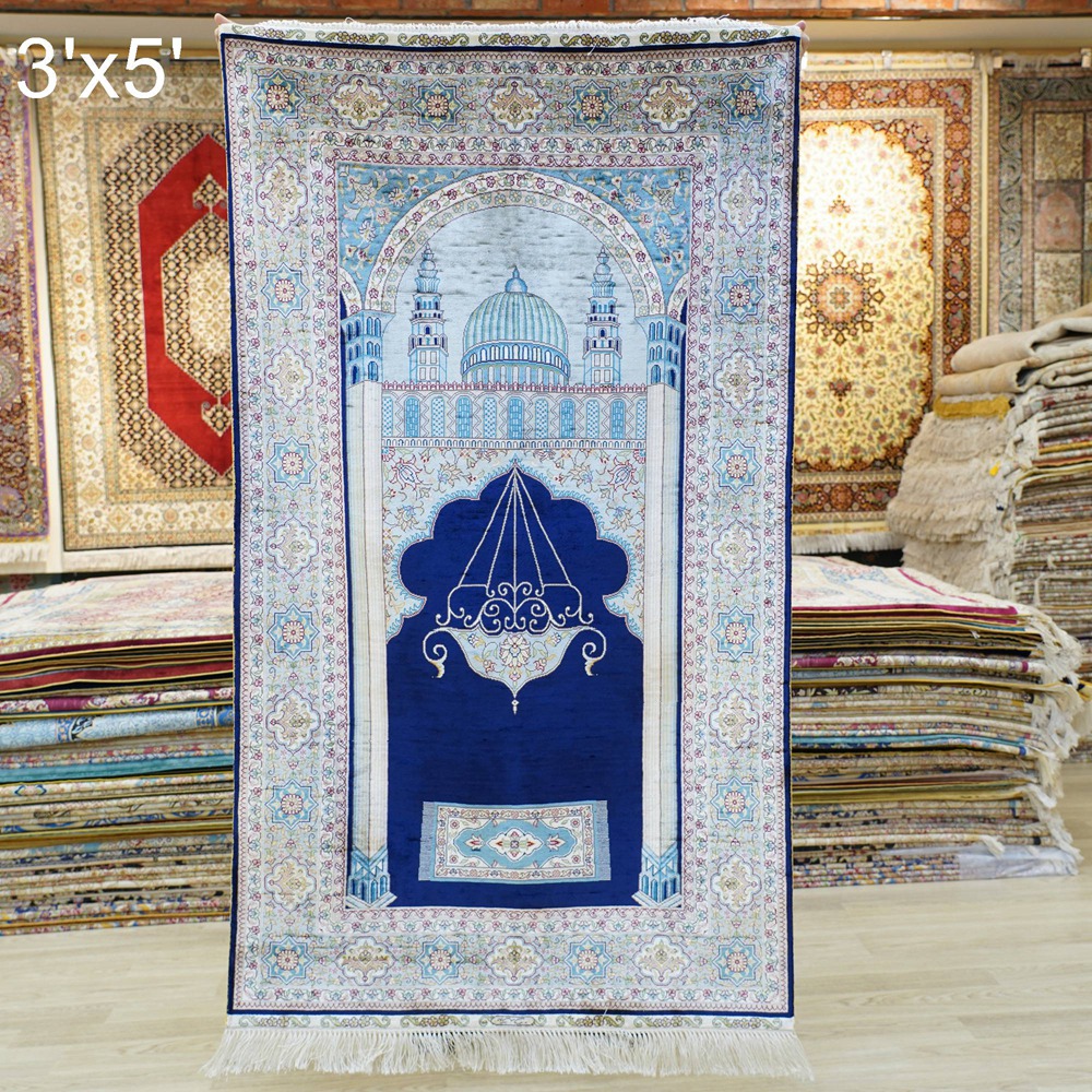 3x5ft Blue handmade silk prayer rug