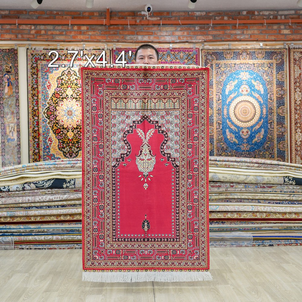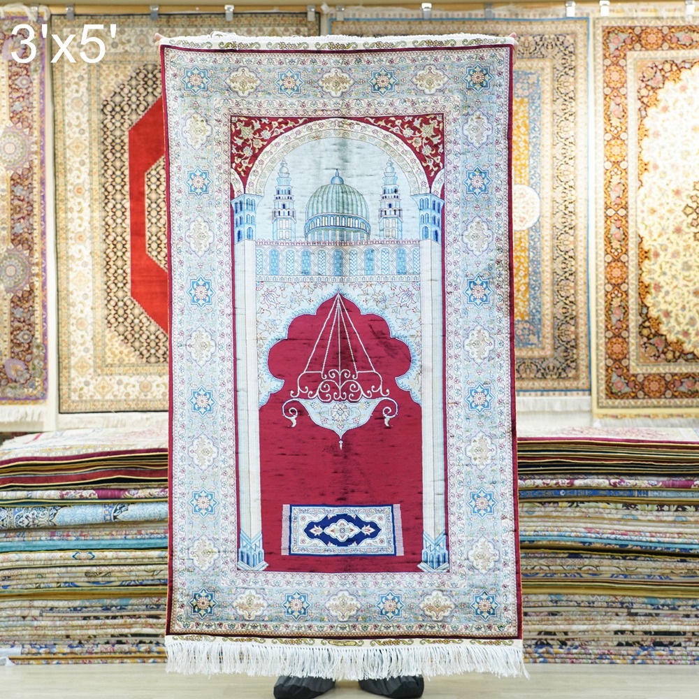 3x5ft Red handmade silk prayer rug