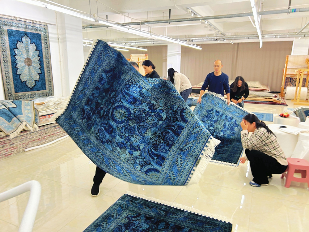 This is a busy day, everyone packed up the handmade silk carpets for our customer.