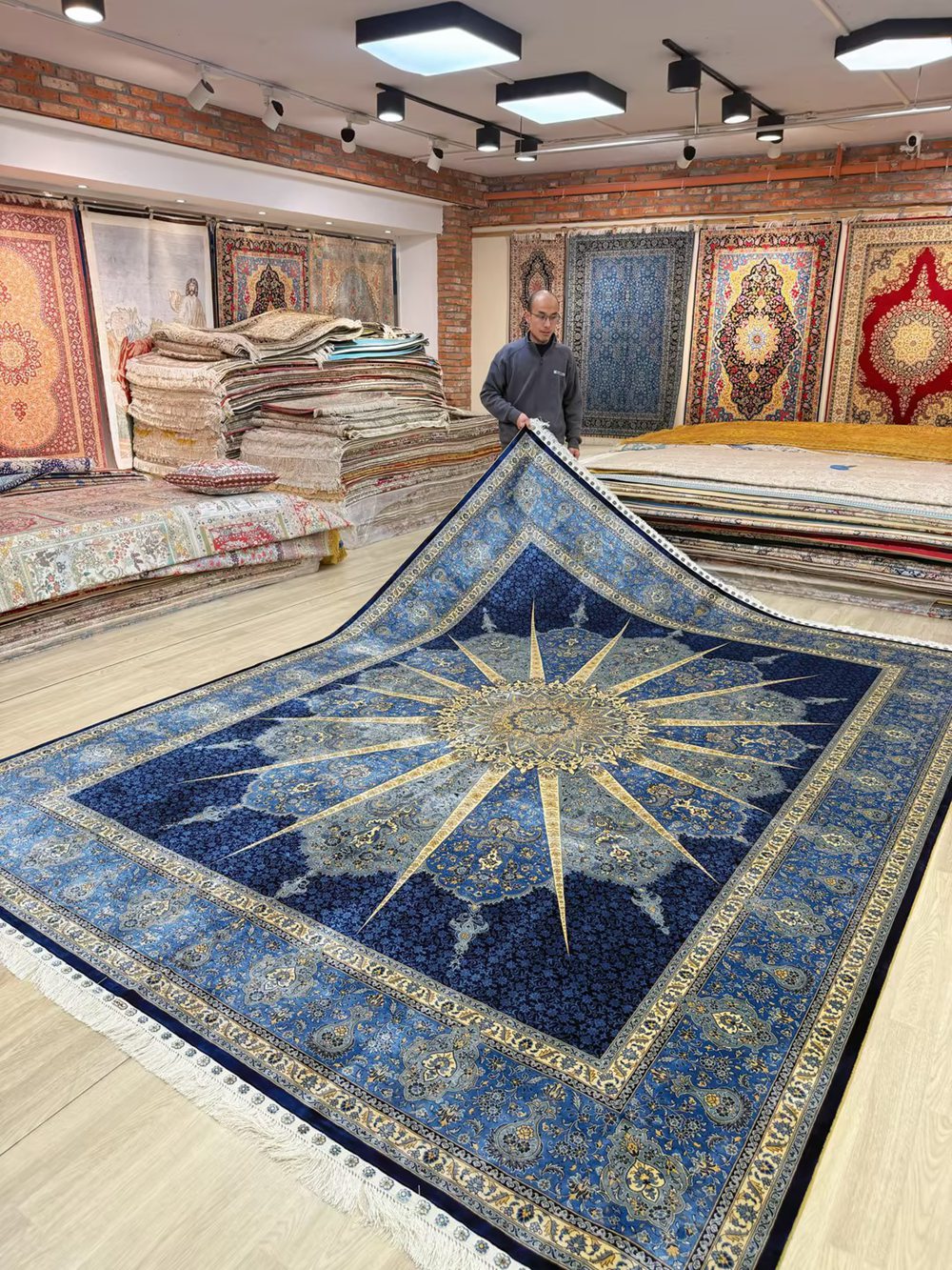 Blue Peacock Design And Sultan Design Handmade Silk Carpets Shipped To Our Customer