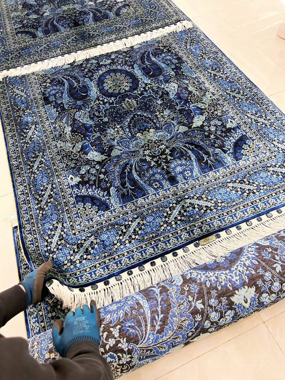These handmade Turkish silk carpets had been packed up and were delivered to our customer.