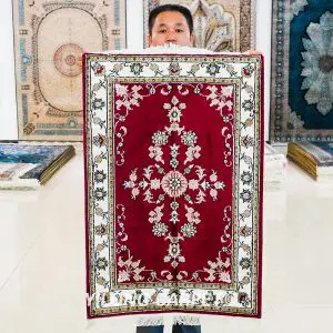 Pakistan Silk Rug Red Persian Hand Knotted Silk Rug 2x3ft