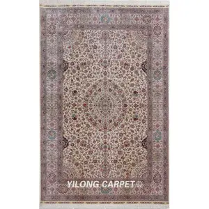 Pure Silk Rug Persian Beige Hand Knotted Silk Carpet 6x9ft