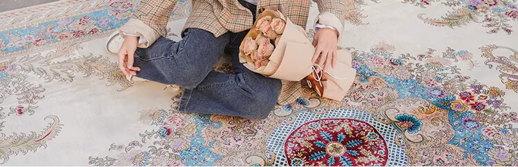 Hand Knotted Silk Rug Floral Persian Beige Rug 3x5ft