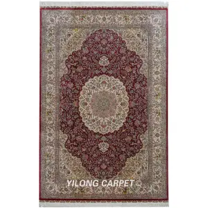 Qum Pure Silk Rug Persian Bink Hand Knotted Rug 6x9ft