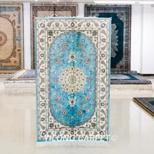 Qum Rug Blue Persian Handmade Small Silk Rug 3x5ft
