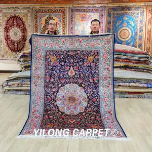 Persian Rug Blue Oriental Rug Handmade Area Silk Rug 4x6ft