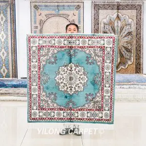 Pakistan Silk Rug Hand Knotted Silk Oriental Square Rug 4x4ft