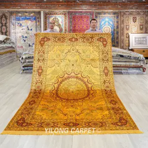 Antique Persian Handmade Carpet Silk Golden Oriental Rug 6x9ft