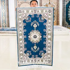 • -30%Pakistan Rug Silk Hand Knotted Blue Oriental Silk Carpet 2.5x4ft Original price was: $900.00.Current price is: $630.00.