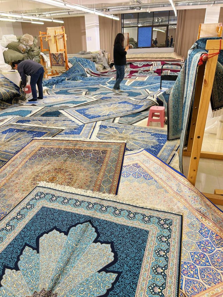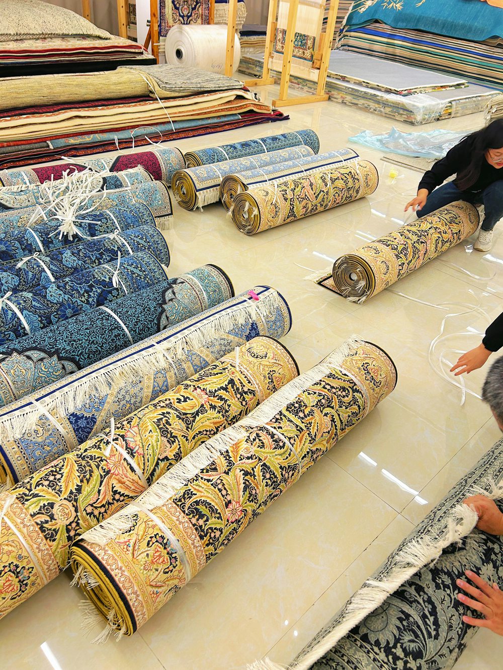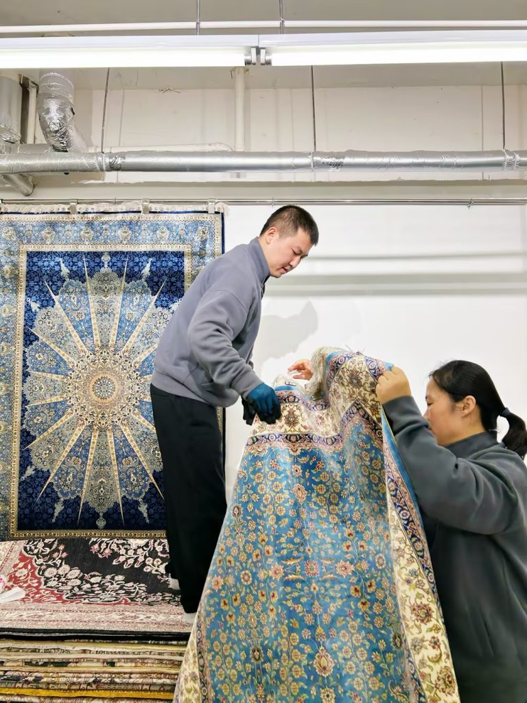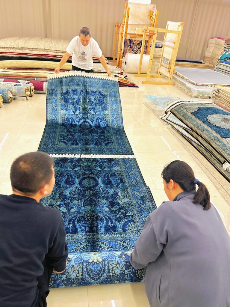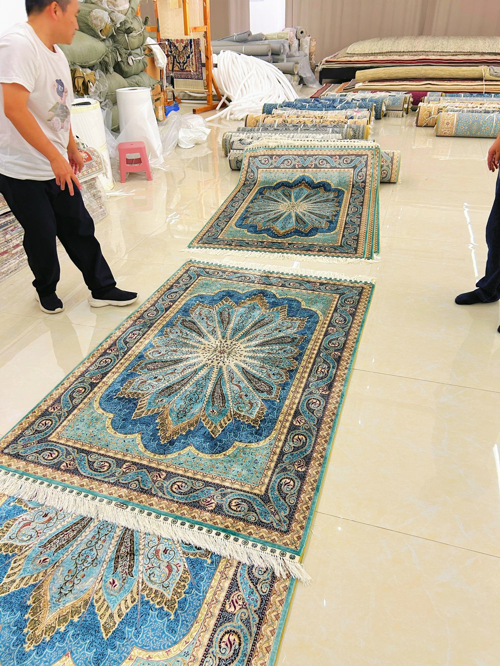 4x6ft Blue handmade silk carpet from Yilong were sent to our customer.
