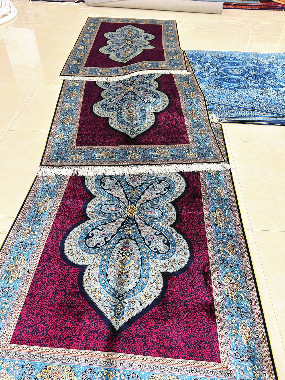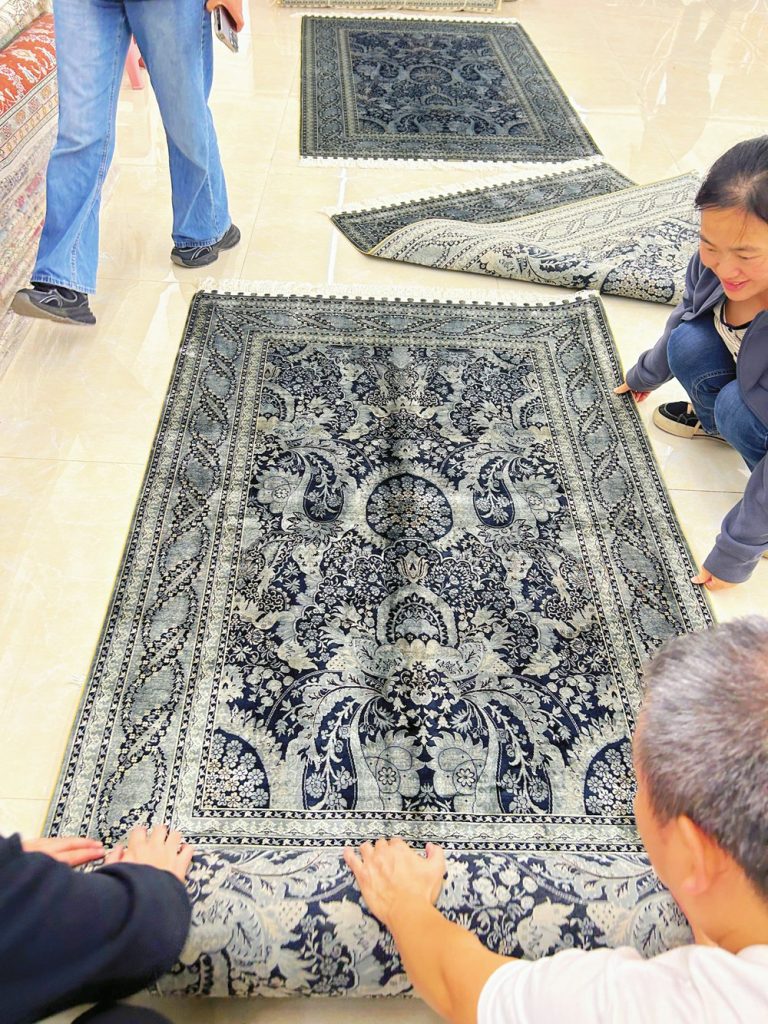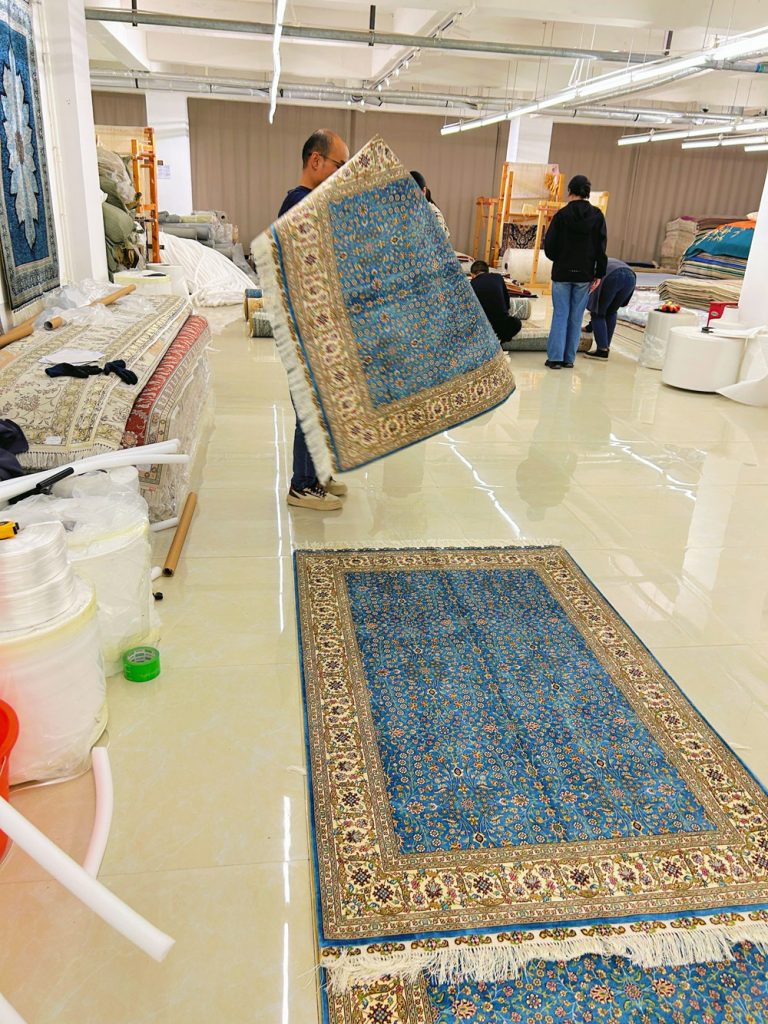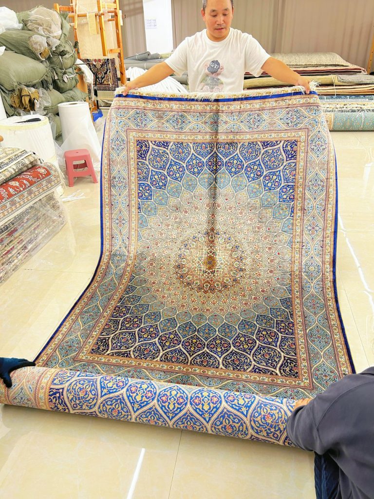 These 4x6ft blue flower all over the floor design handmade silk rugs shipped to our customer.