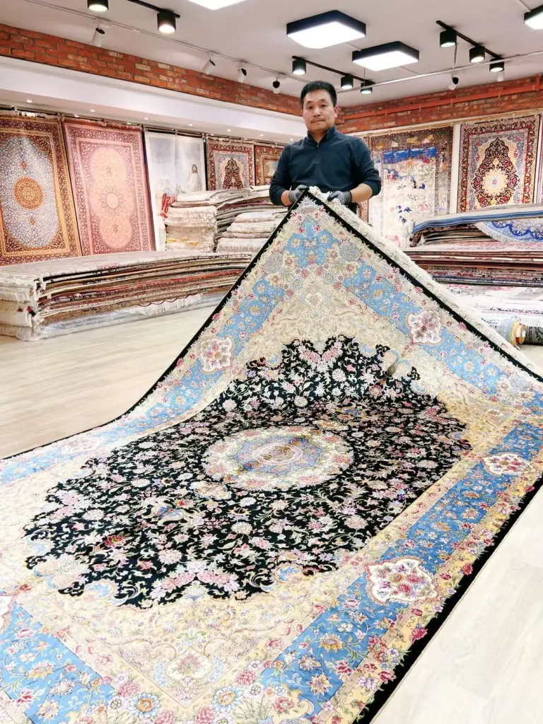 Blue silk rugs are popular, these blue hand knotted silk rugs had been sent to Dubai.