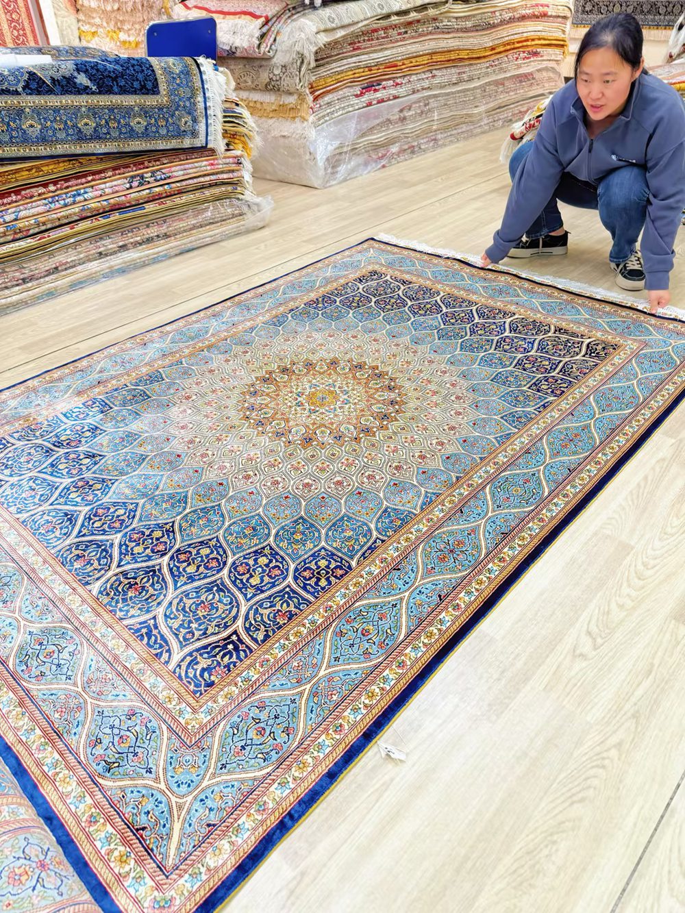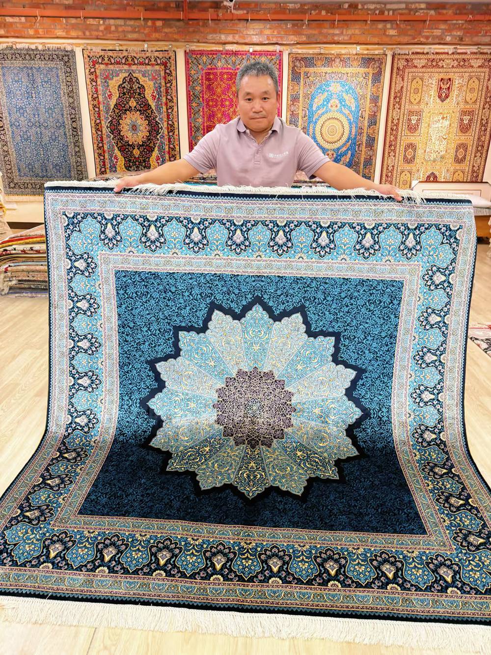 For this design, 5x7ft handmade silk rugs are in stock now.